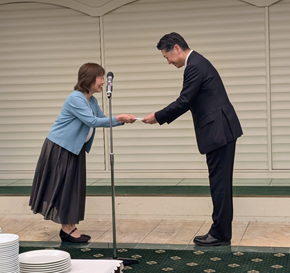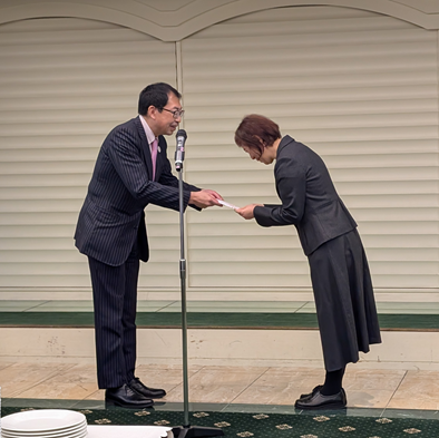 同日開催された学術講演会に続き、終了後の懇親会において、退任者へ記念品の贈呈が行われました。